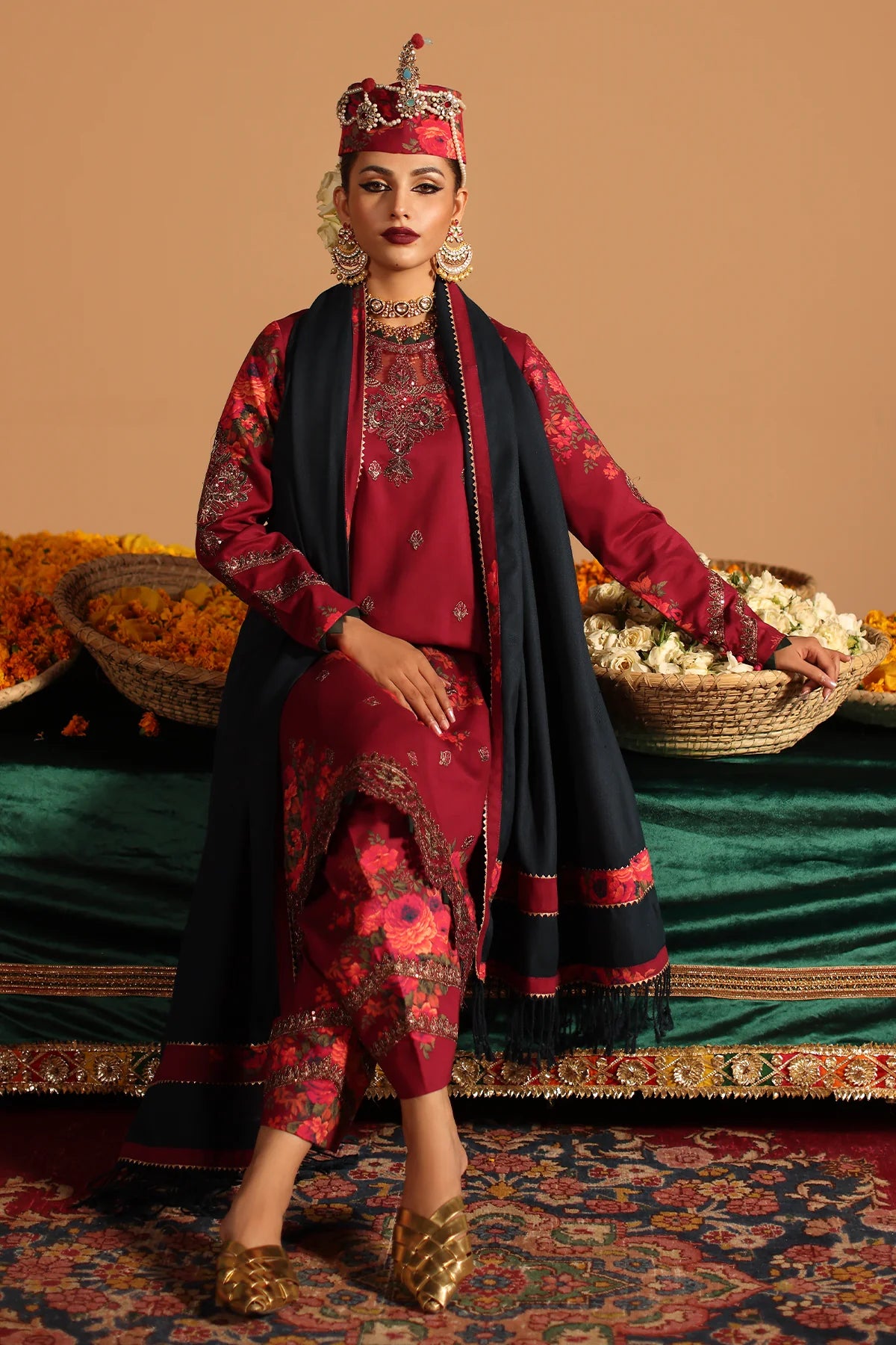 3-PC Stitched Embroidered Acrylic Viscose with Dyed Wool Shawl CMW4-03 Stitched