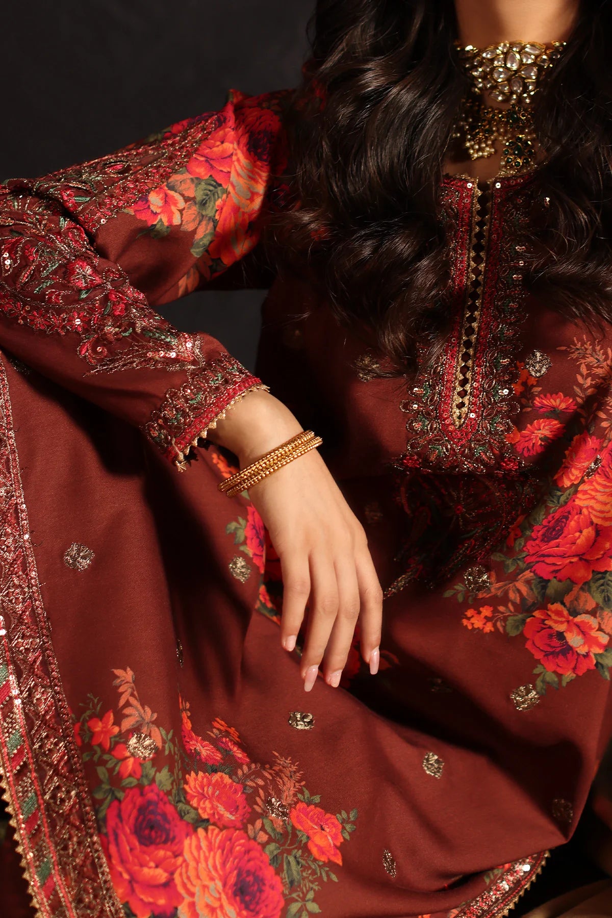 3-PC stitched Embroidered Acrylic Viscose with Dyed Wool Shawl CMW4-08 Stitched